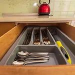 アパ-トメントに電気ポット,キッチン用品とオ-ブンがあり,器具でいっぱいの台所も可能です.[Centras]バス停は歩きで10分で行けます.